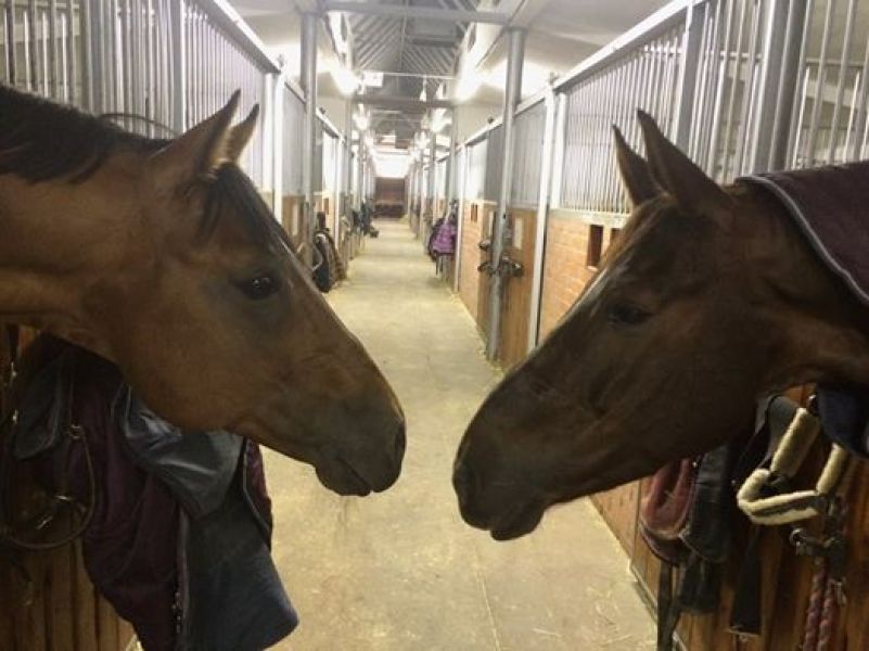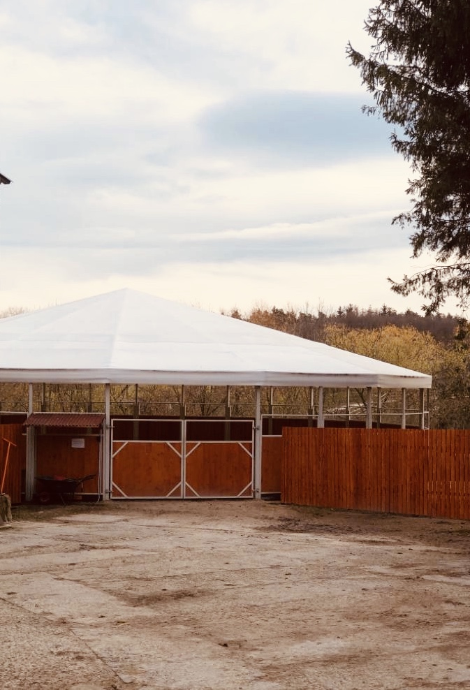 Koně jsou u nás ustájeni v prostorných boxech 3 m x 4 m a k dispozici jsou i travnaté výběhy. Stáje jsou vybaveny okny a gumou na podlaze. Nabízíme možnost kvalifikovaného skokového tréninku pod vedením Václava Studničky. Příprava jezdců od ZZVJ až skokové závody.
